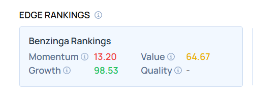 - Edge Stock Ratings: 13.20 Momentum score with Value at 64.67.